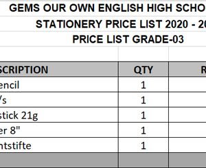 GEMS MILLENNIUM SCHOOL SHARJAH-GMS STATIONERY SET FOR GRADE 06