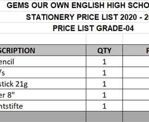 GEMS MODERN ACADEMY – STATIONERY SET FOR GRADE 03