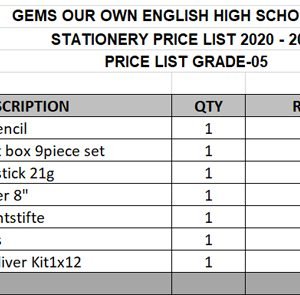 GEMS MODERN ACADEMY – STATIONERY SET FOR GRADE 05