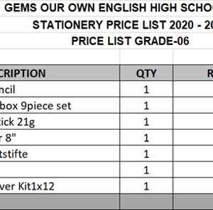 GEMS OUR OWN ENGLISH HIGH SCHOOL-OOB STATIONERY SET FOR GRADE 06