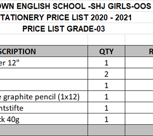 OUR OWN ENGLISH SCHOOL -SHJ GIRLS-OOS STATIONERY SET FOR GRADE-03